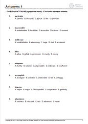 These FREE 11 Plus antonyms worksheets are available for immediate download in PDF format.